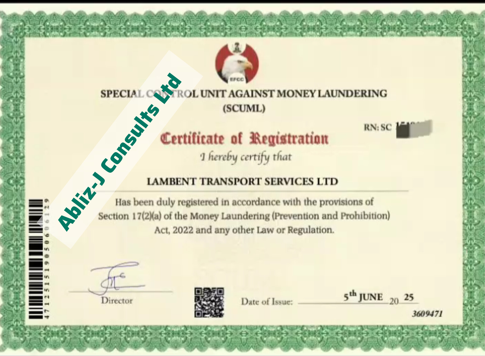 Buy Secure Your SCUML Certificate Now! on Abliz-J Consults